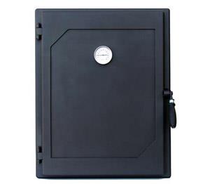 Dvířka jsou masivní,vyrábí se z ocelového plechu.Vnitřní rozměr š440 x v560,vnější š480 xv600,uvnitř je izolace,Mají vnitřní nerezový plech s odkapávacím žlábkem. Teploměrem do 120 C je součástí dvířek.Povrchvá úprava-- ryskání,nástřik žáruvzdornou černou barvou a následuje výpal v peci.